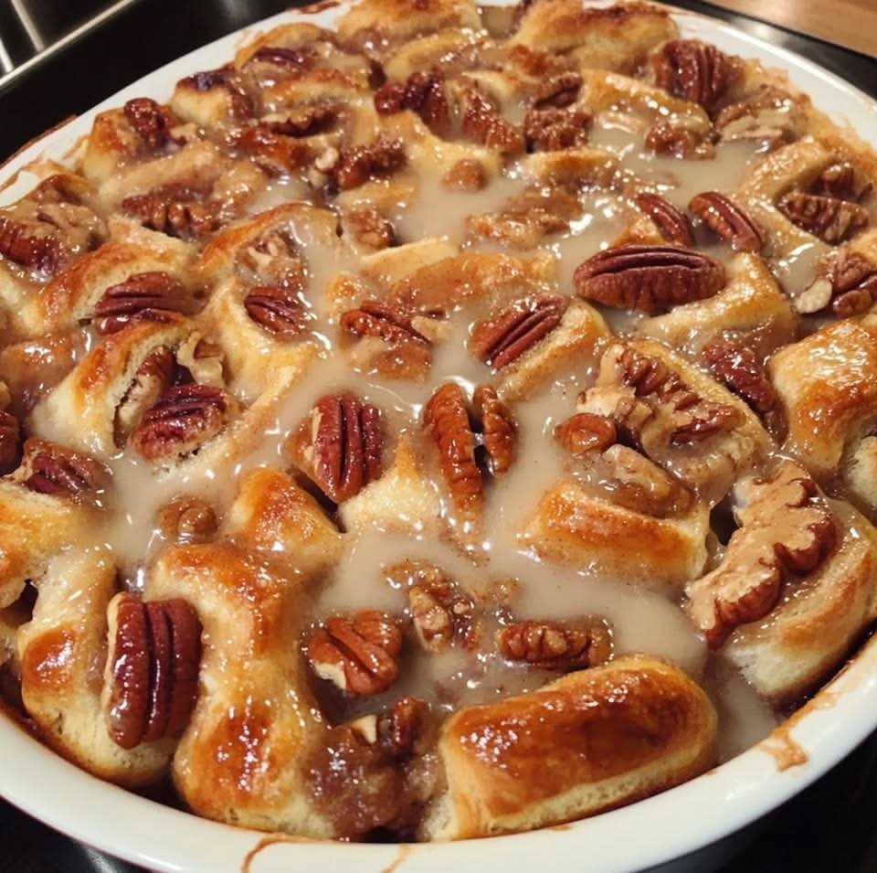 Apple Cinnamon Roll Bake with Pecans
